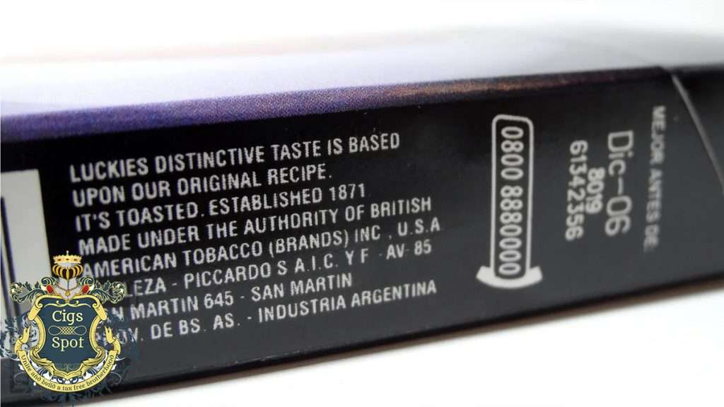 The pack of this review is also “licensed,” but made in Argentina, as evidenced by the excise stamp and the “technicals” on the side of the box.