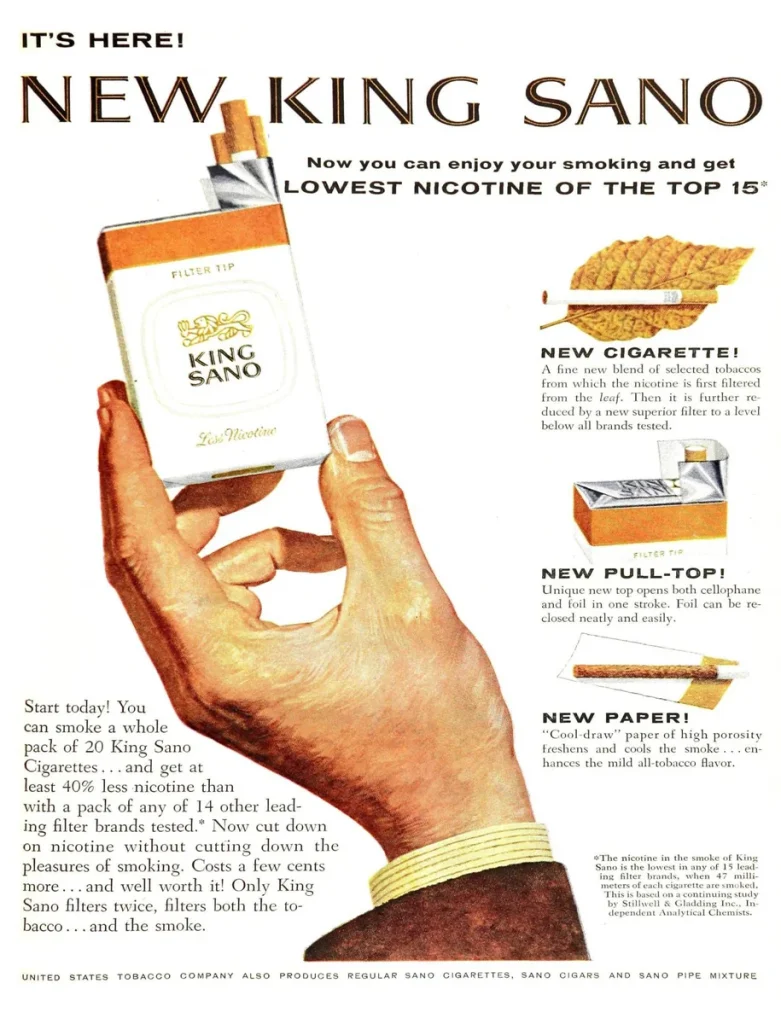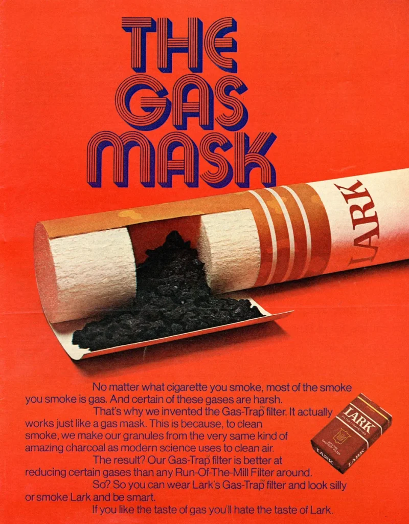 And the most popular promotional theme that persists to this day was, of course, cigarette filters. Though how much can you think of there? Acetate fiber… Well, maybe in combination with charcoal chips. What else? But in fact, the topic of cigarette smoke filtration is very broad and interesting, deserving a separate topic. Besides, it has already been started in the post “History of Cigarette Filter” and will be continued in the very near future.